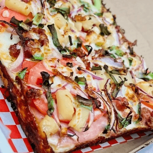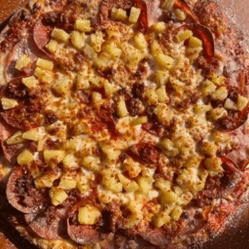 Canadian bacon, pepperoni, juicy pineapple, mozzarella & crispy bacon
