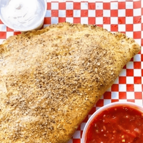 A delicious pizza turnover filled with a combination of ingredients