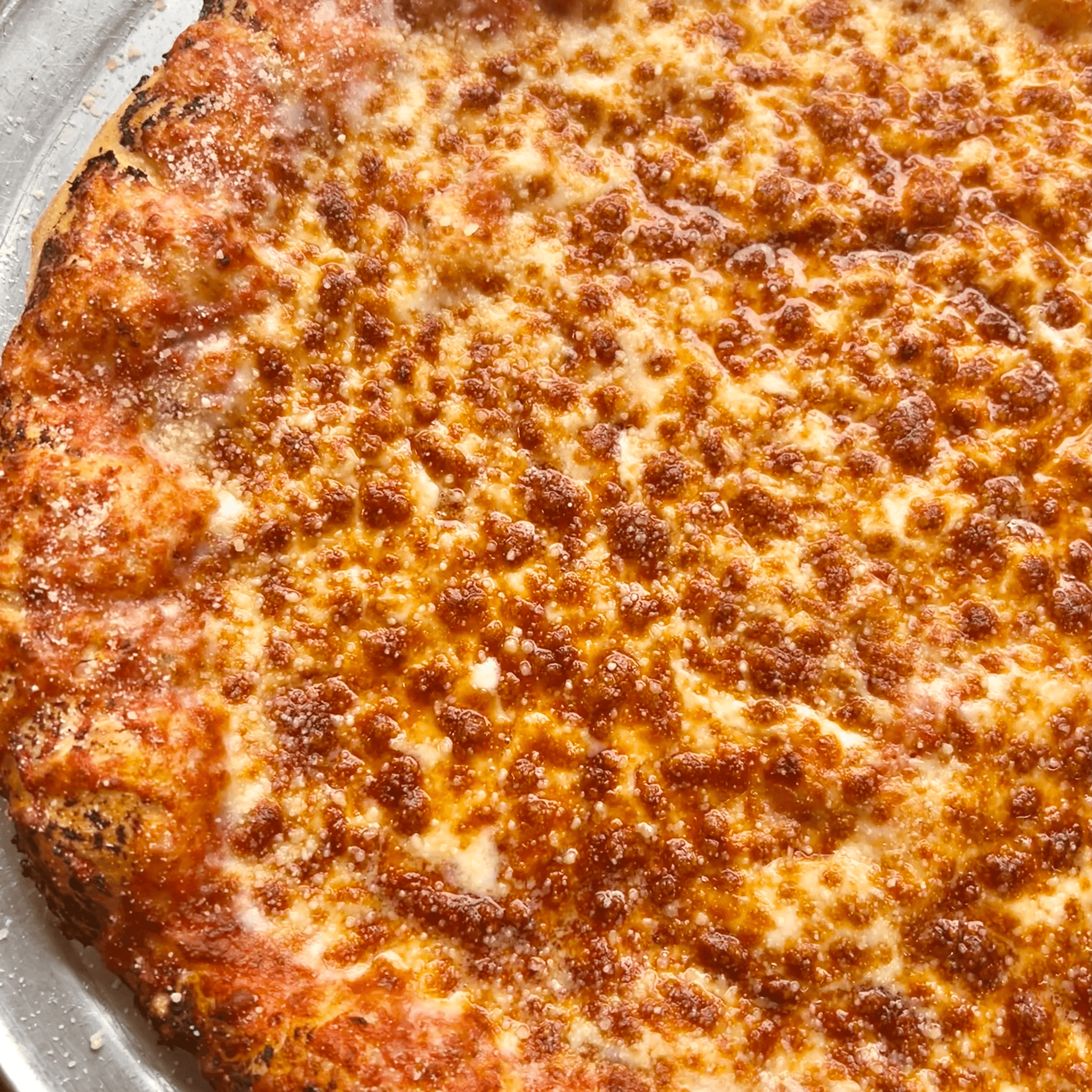 Garlic white sauce, four cheese blend, shredded parm, garlic butter parm crust