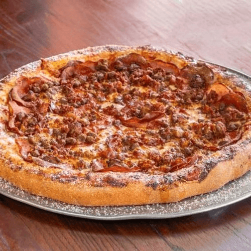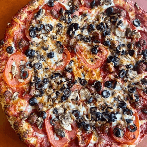 Pepperoni, Italian sausage, mushrooms, tomatoes & black olives