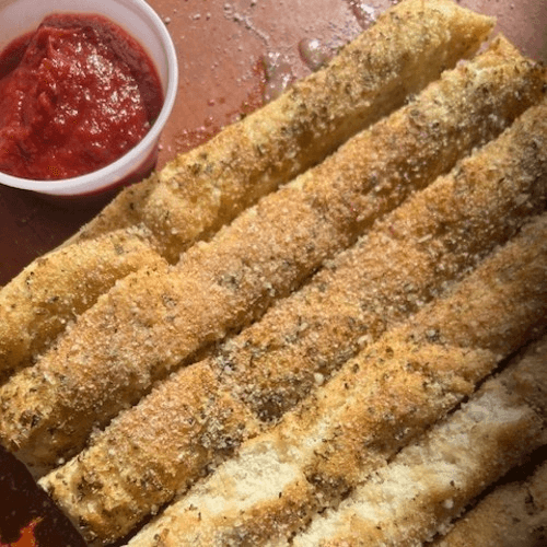 Bread sticks served with red sauce
