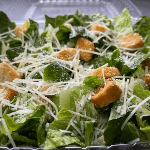 Romaine lettuce, croutons, shredded parmesan cheese, and caesar dressing